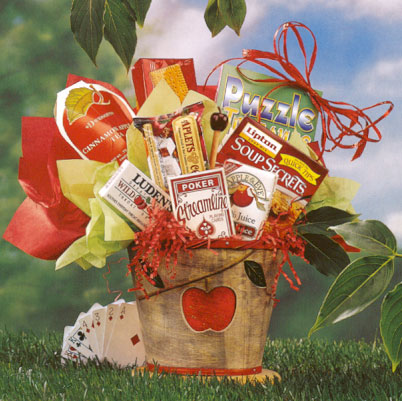 Get well, get happy! Wish someone a speedy recovery with this cheery collection of apple theme novelties. A delightful apple planter is filled with fun snacks, playing cards, a puzzle book, chicken soup and more. Perfect for anyone on the mend. (Medium Shown) |