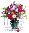 Whether it’s for birthday festivities or any celebration, this arrangement is sure to be the hit of the party! Featuring a colorful collection of Gerbera Daisies, Snapdragons, Mini-Carnations, Lisianthus, and other vibrant blooms, this arrangement of over a dozen stems comes in a beautiful glass vase. |