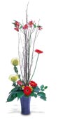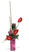 Who isn't attracted to something tall, exotic and beautiful? Anthurium, Protea and Cut River Cane fill a tall, slender vase. Irresistible. |