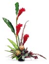 An arrangement fit for an island queen. Regal Red Ginger, Leucadendron, Queen Mini-Protea and more adorn a low bowl. Bowing is optional. |