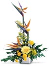 You think they're the best - so send them a little paradise! Birds of Paradise stand tall among the Gerbera Daisies, Button Poms and greens in this squared dish. |