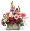 Melodious colors create perfect harmony in this basket filled with Gerbera Daisies, Snapdragons, Bouvardia, Anemone, Mini-Carnations and more. |