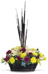 Accent the richness of the season. Cream colored lilies are accented with gorgeous yellows and deep burgundy, and highlighted with dark brown cattails. |